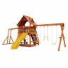 Детский городок изготовлен из северной древесины хвойных пород, обработанной безопасной декоративно-защитной пропиткой. Технология значительно увеличивает срок службы конструкций, повышает прочность древесины, защищает её от гниения и грибков. Обработка придаёт дереву приятный оттенок, проявляет и подчёркивает его текстуру. Используемая пропитка не содержит токсичных компонентов, экологична и абсолютно безопасна для ребёнка. Состав прошёл санитарно-эпидемиологическую экспертизу в Центре гигиены и эпидемиологии в г. Кургану.